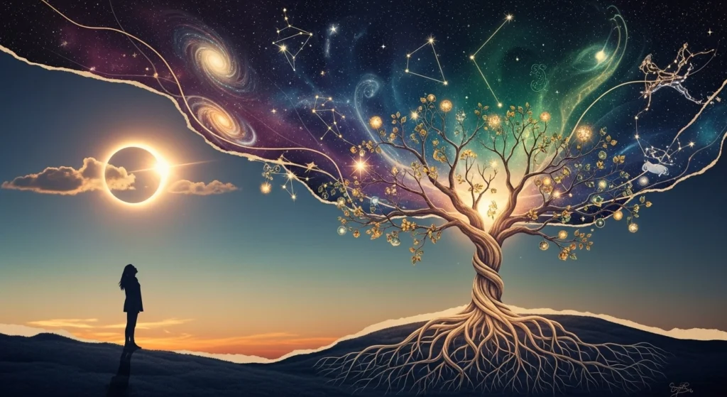 Um eclipse pode ativar justamente esses pontos invisíveis. Às vezes a sensação é de estar repetindo o destino de alguém da família, como se fosse um eco de algo não resolvido. Pode ser um padrão de perfeccionismo herdado, ou o hábito de se anular pelos outros.